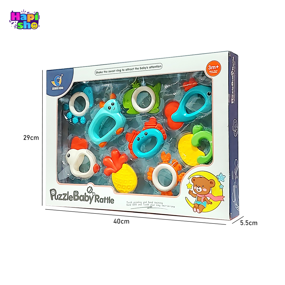 مدل: ست جغجغه نوزاد خارجی ۹ عددی همراه دندانگیر مدل PUZZLE BABY RATTLE–اسباب بازی