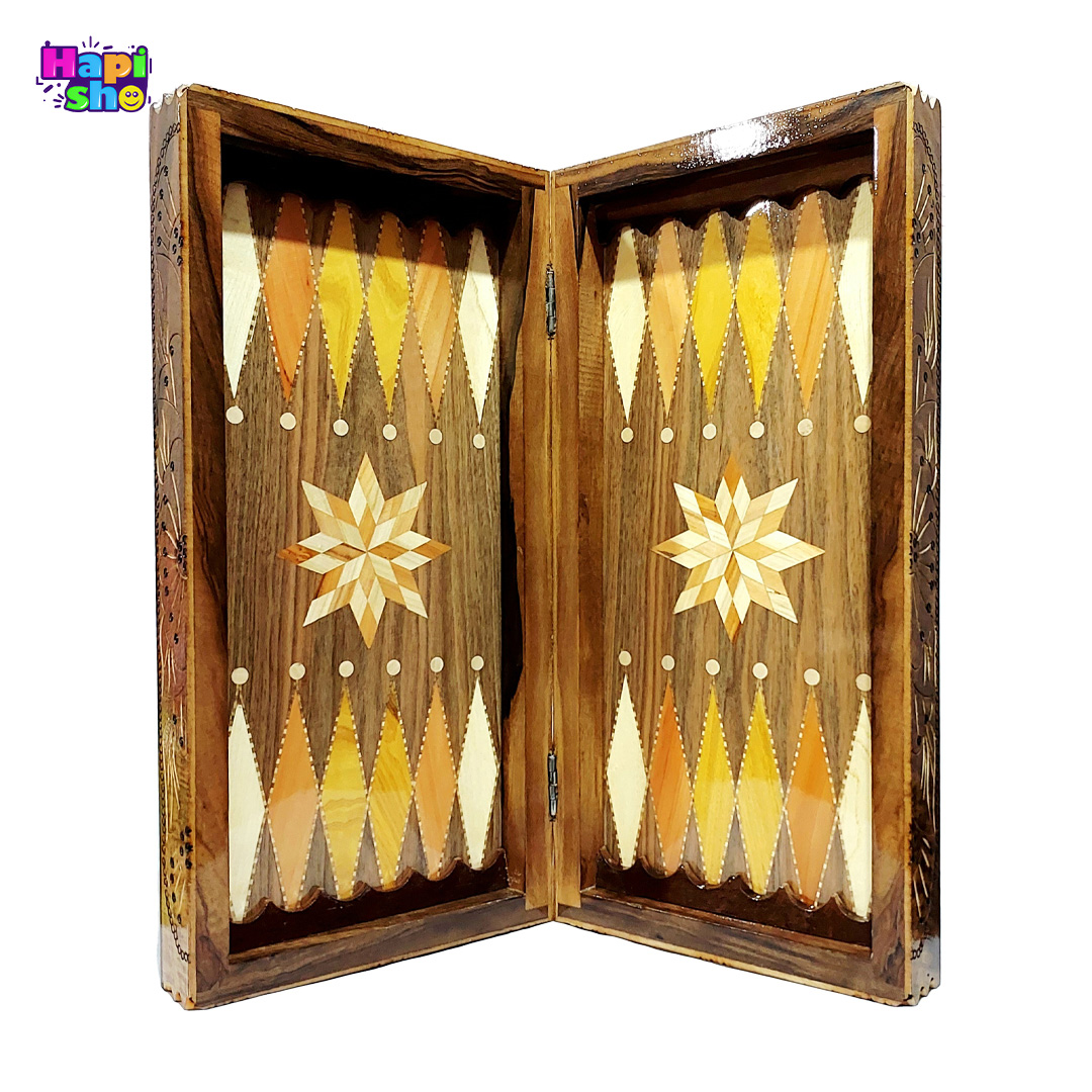 تخته نرد گردو سنندج با معرق کاری و منبت دور مدل 50 سانتی کد 461–تخته نرد