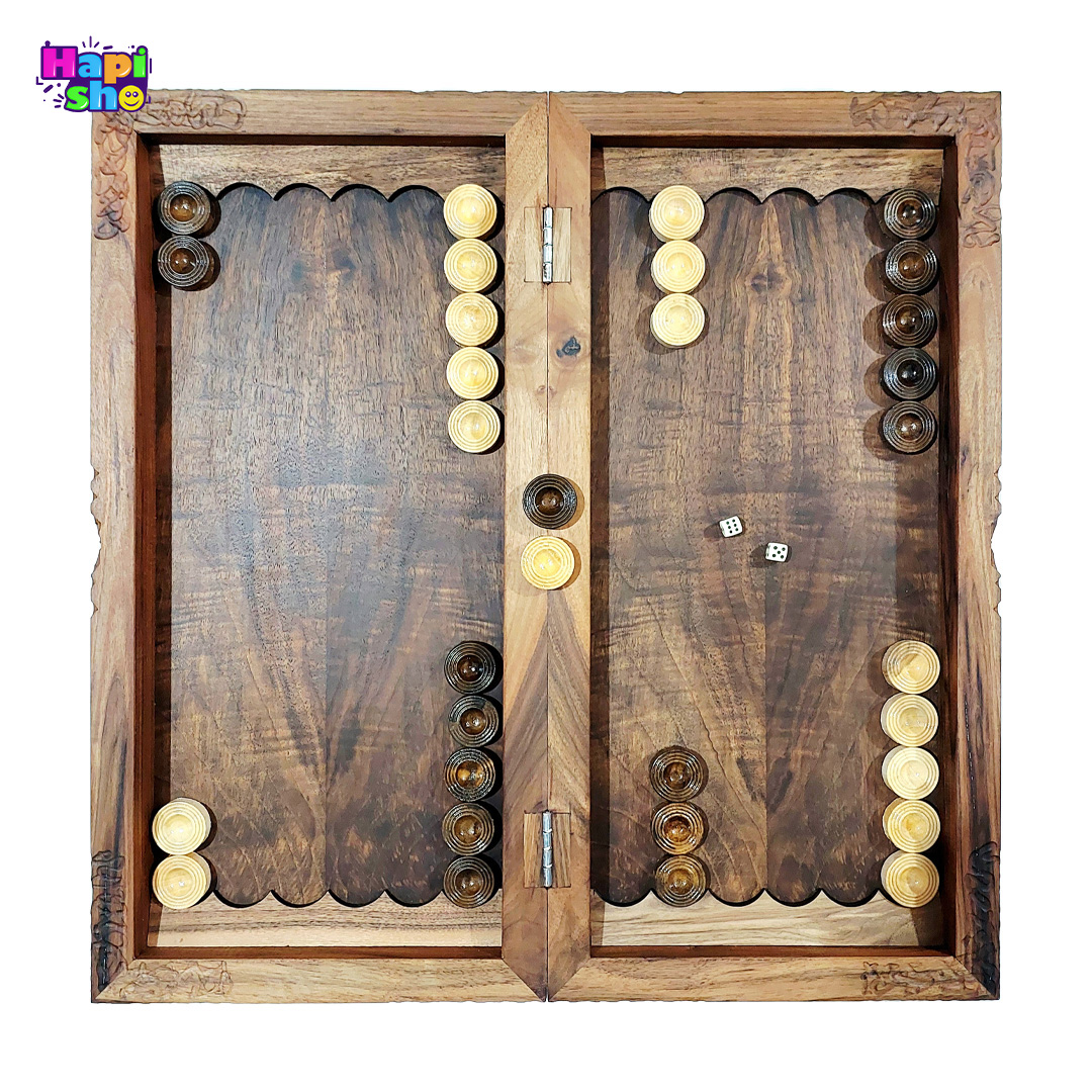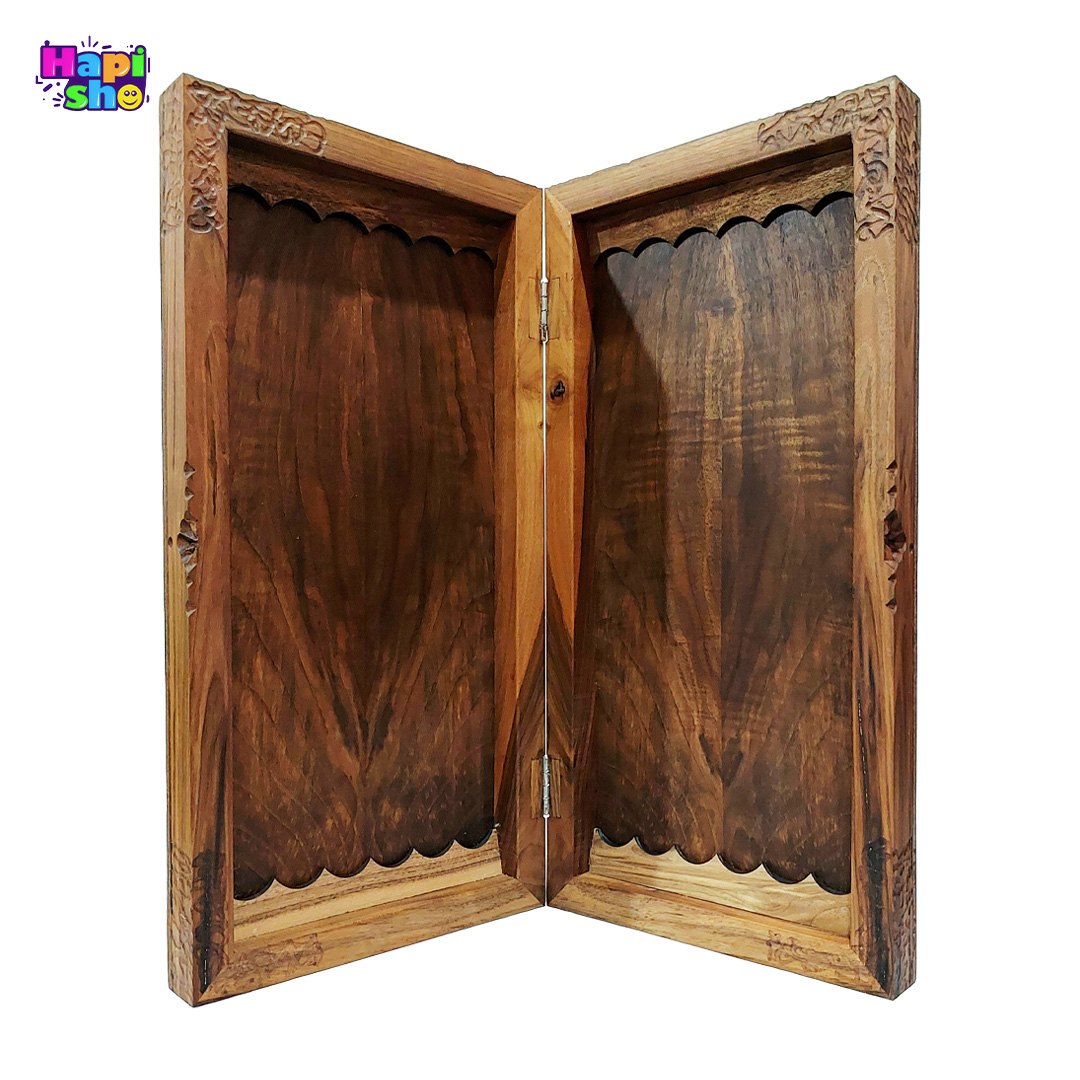 مدل: تخته نرد ریشه گردو منبت کاری شده با شطرنج طرح سایان 50 سانتی کد 481–تخته نرد