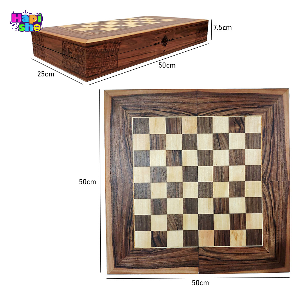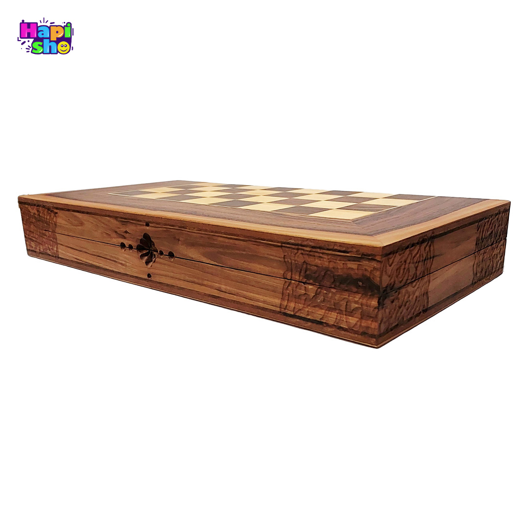 تخته نرد ریشه گردو منبت کاری شده با شطرنج طرح سایان 50 سانتی کد 481