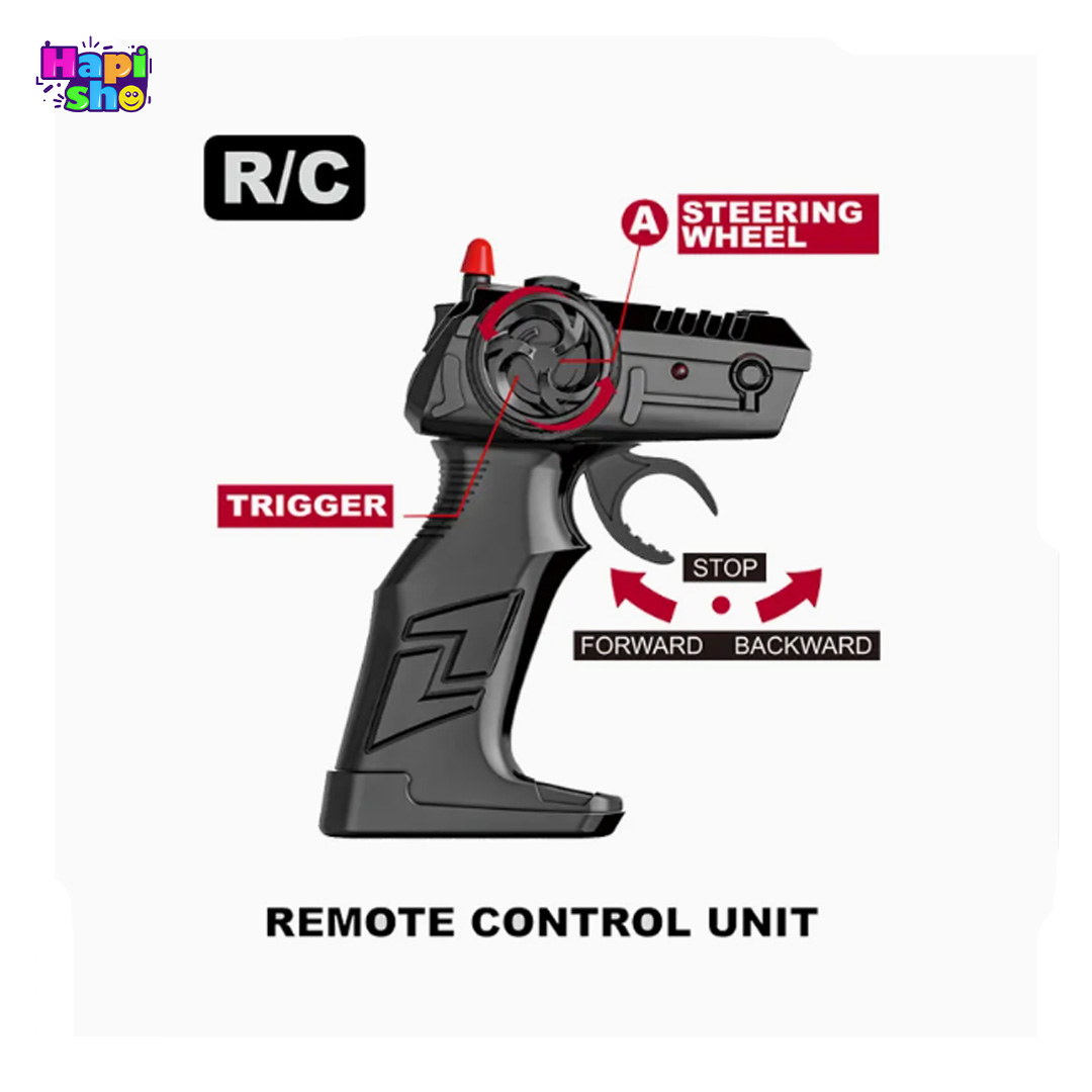 ویژگی: باتری شارژی، دودزا، چراغدار، ریموت تفنگی 2.4 گیگاهرتزی، چهارچرخ متحرک آفرود، چرخ و تایرهای بزرگ مناسب سطوح مختلف، بدنه فلز و پلاستیک، وارداتی