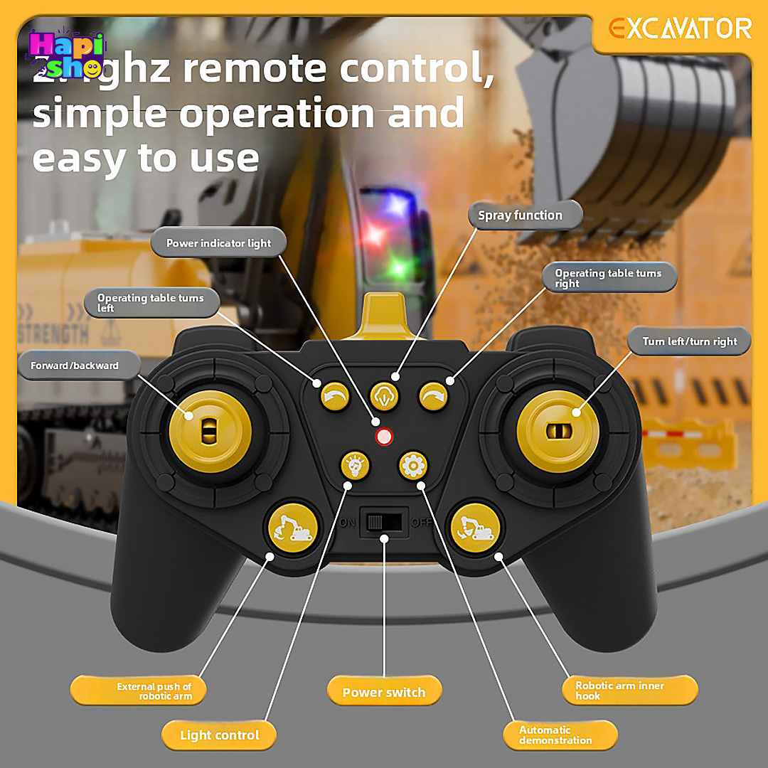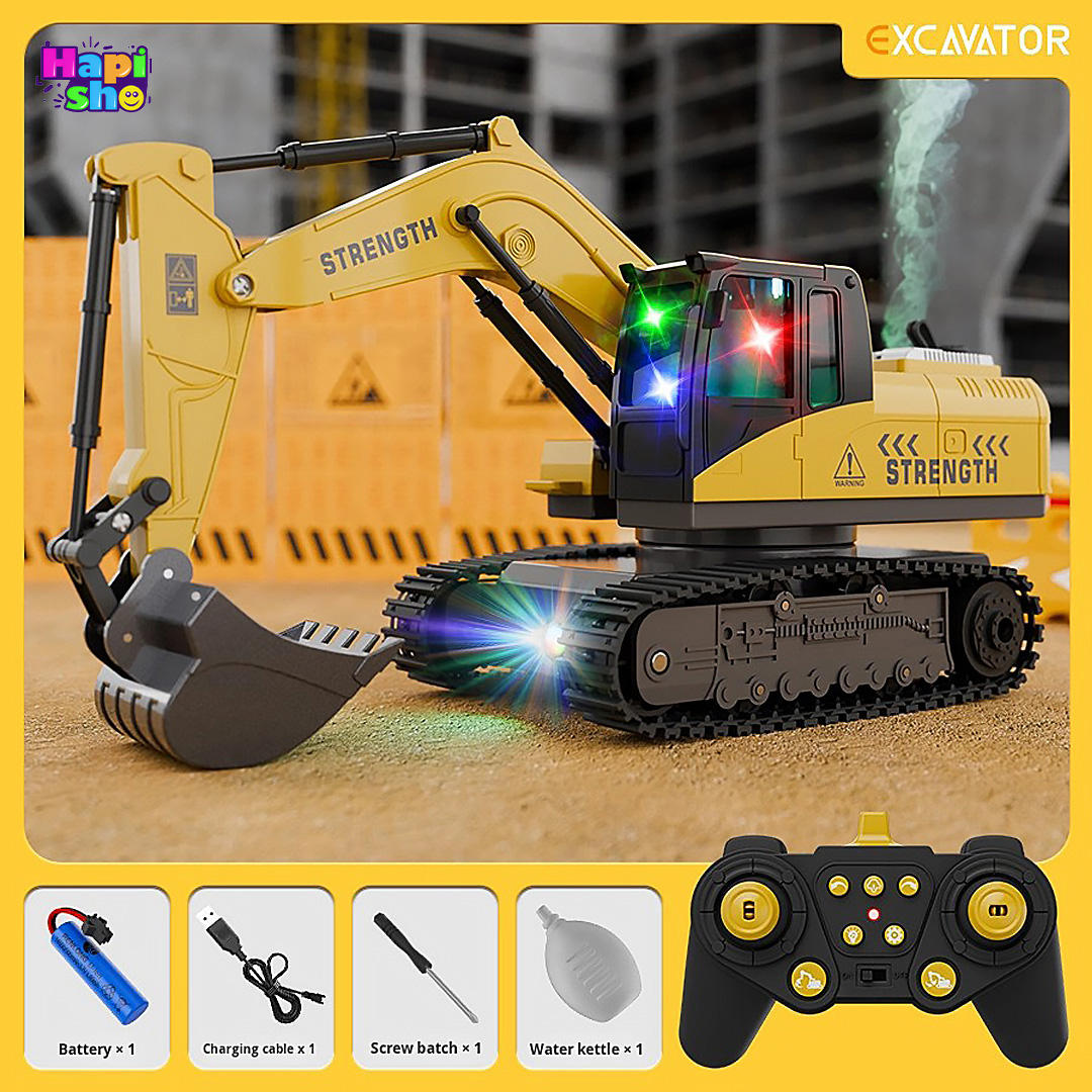 مدل: اسباببازی بیل مکانیکی کنترلی شارژی دودزا با چراغ و صدا واقعی EXCAVATOR–اسباب بازی
