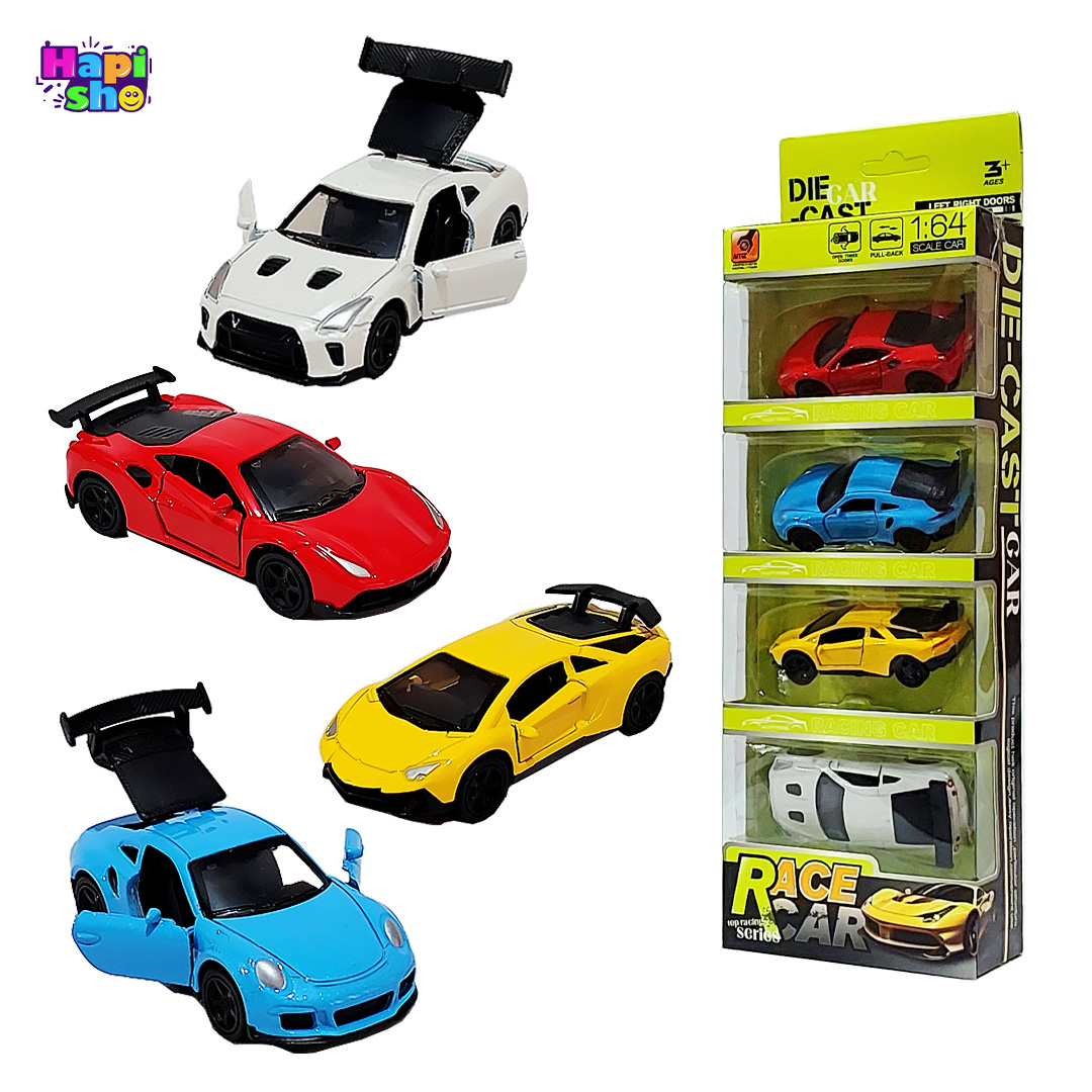 مدل: ماشین فلزی عقبکش خارجی درببازشو ست ۴ عددی Top Racing Car Series–اسباب بازی