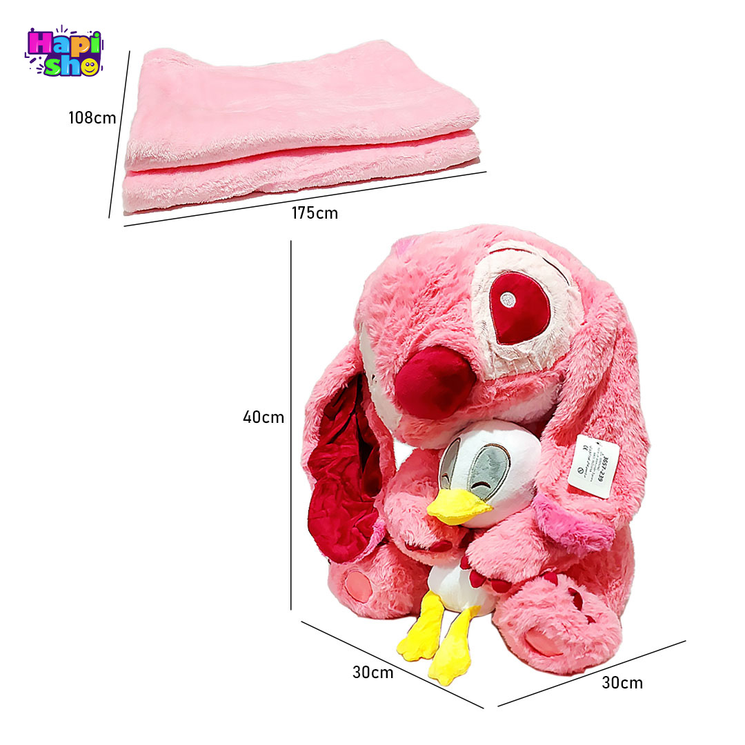 پتوی کاربردی: پتوی بزرگ (۱۷۵×۱۰۸ سانتیمتر) همراه عروسک، مناسب بازی و آرامش.
