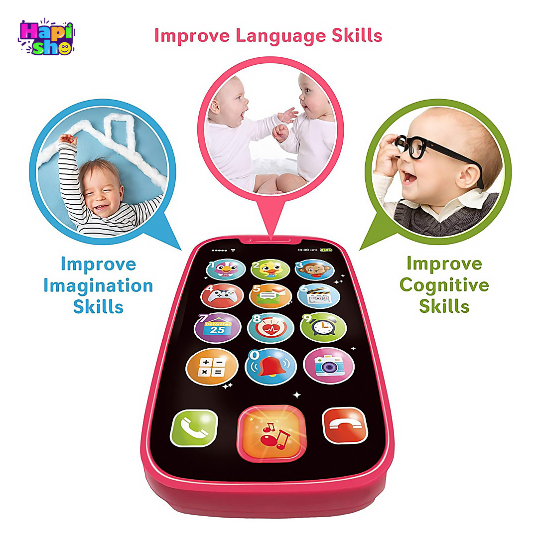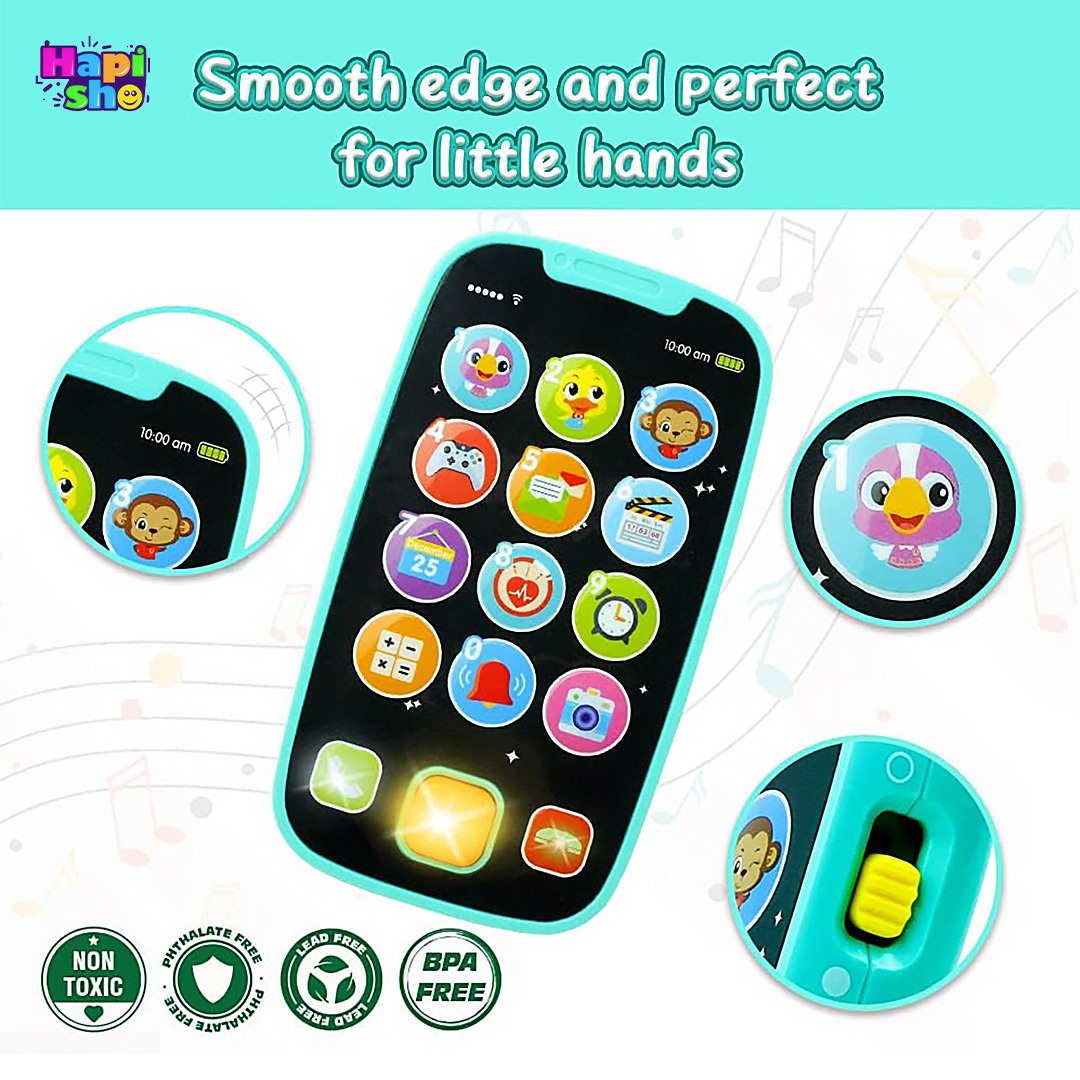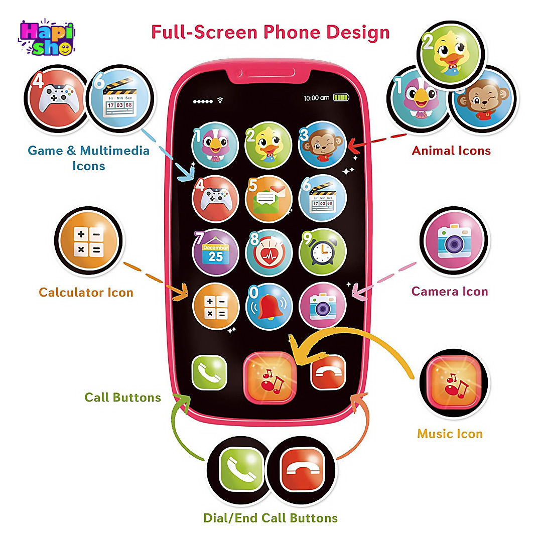 ویژگی: آموزشی، موزیکال، لمسی، دارای چراغ های چشمک زن، باتری خور، دارای 15 عملکرد با جلوه های صوتی متنوع مطابق با نمادهای روی موبایل (حیوانات، تلفن، ساعت زنگ دار، دوربین و ...)، وارداتی