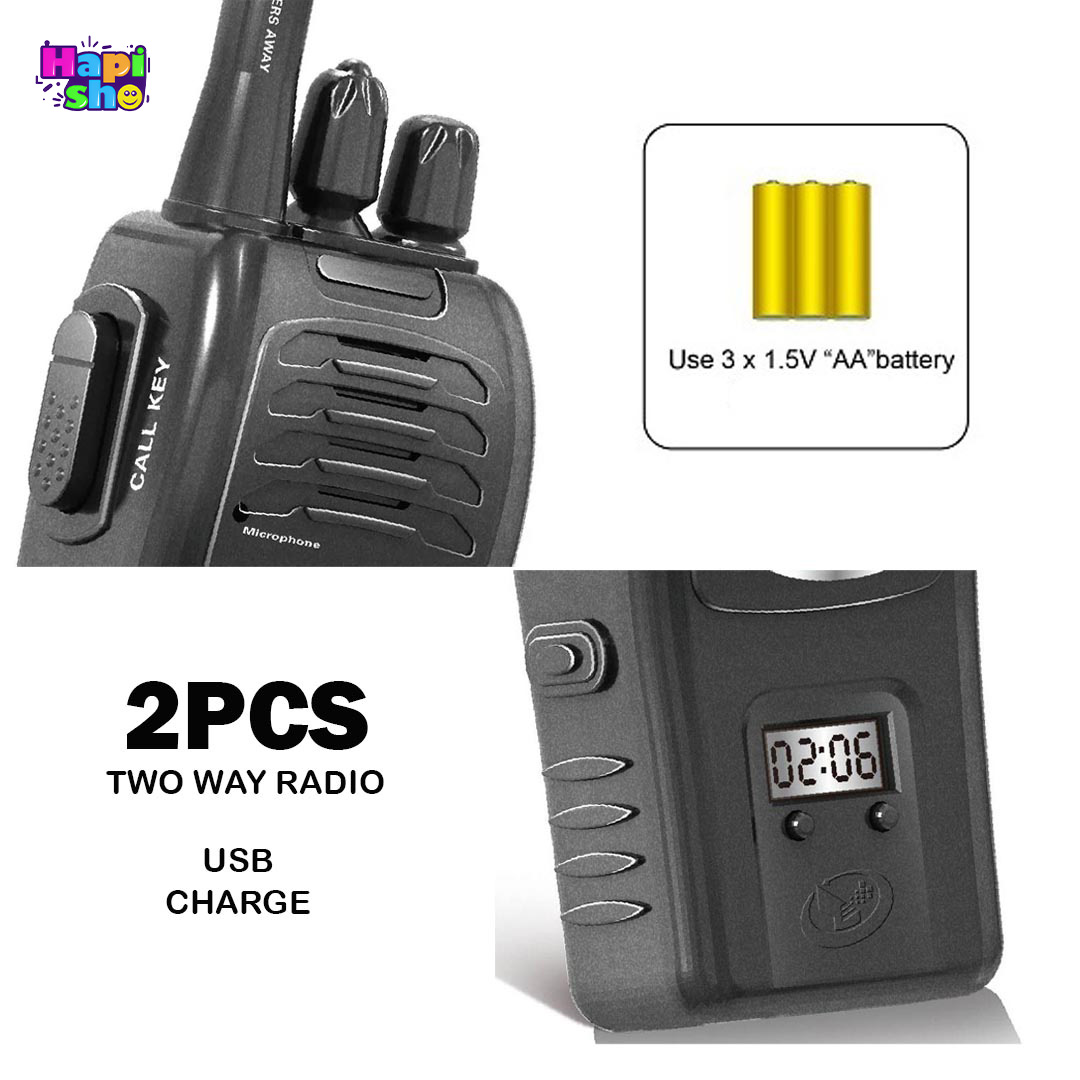 ویژگی: دارای ۲ عدد بیسیم با مکالمه دوطرفه، باتری شارژی قدرتمند، برد تا ۲۰۰ متر، سیستم کاهش نویز، چراغ داخلی برای بازی در محیطهای کمنور، ساعت دیجیتال، وارداتی