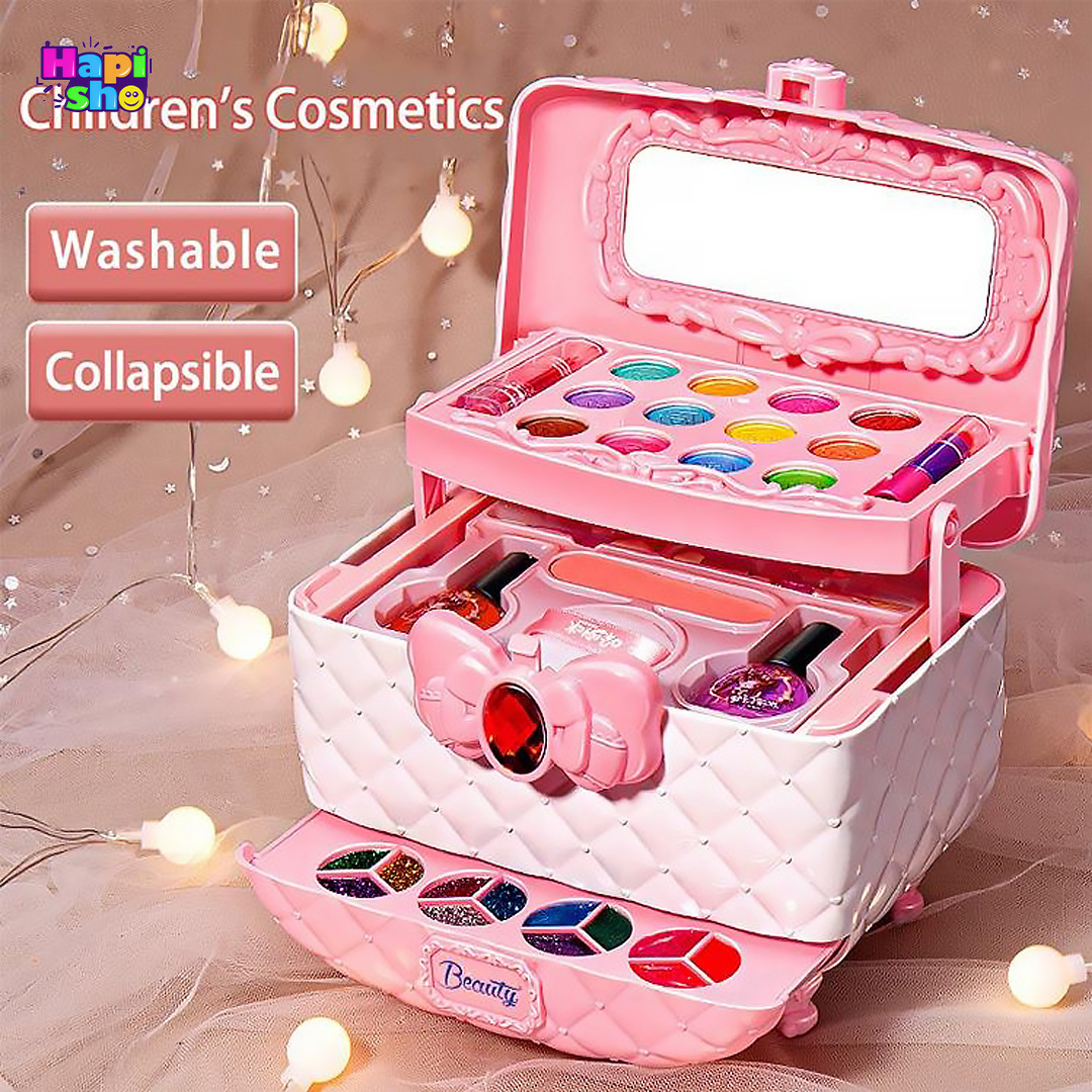 | سایر ویژگی | طراحی دخترانه جذاب، ساختار 3 طبقه کاربردی، کیف قابل حمل، لوازم واقعی ضدحساسیت و قابل شستشو، دارای آینه نشکن، وارداتی |