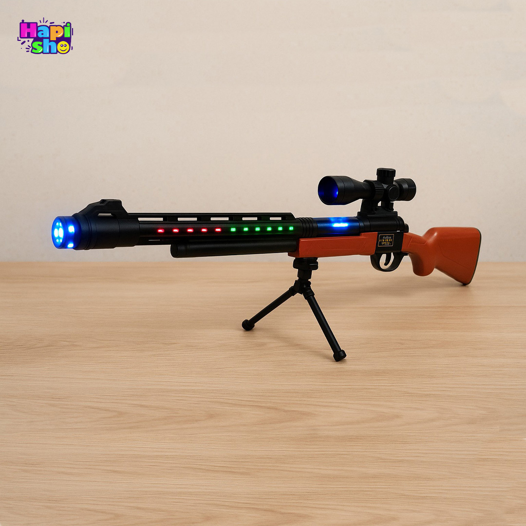 مدل: تفنگ موزیکال چراغدار بزرگ با لوله متحرک و پایه مدل اسنایپر SNIPER GUN–اسباب بازی