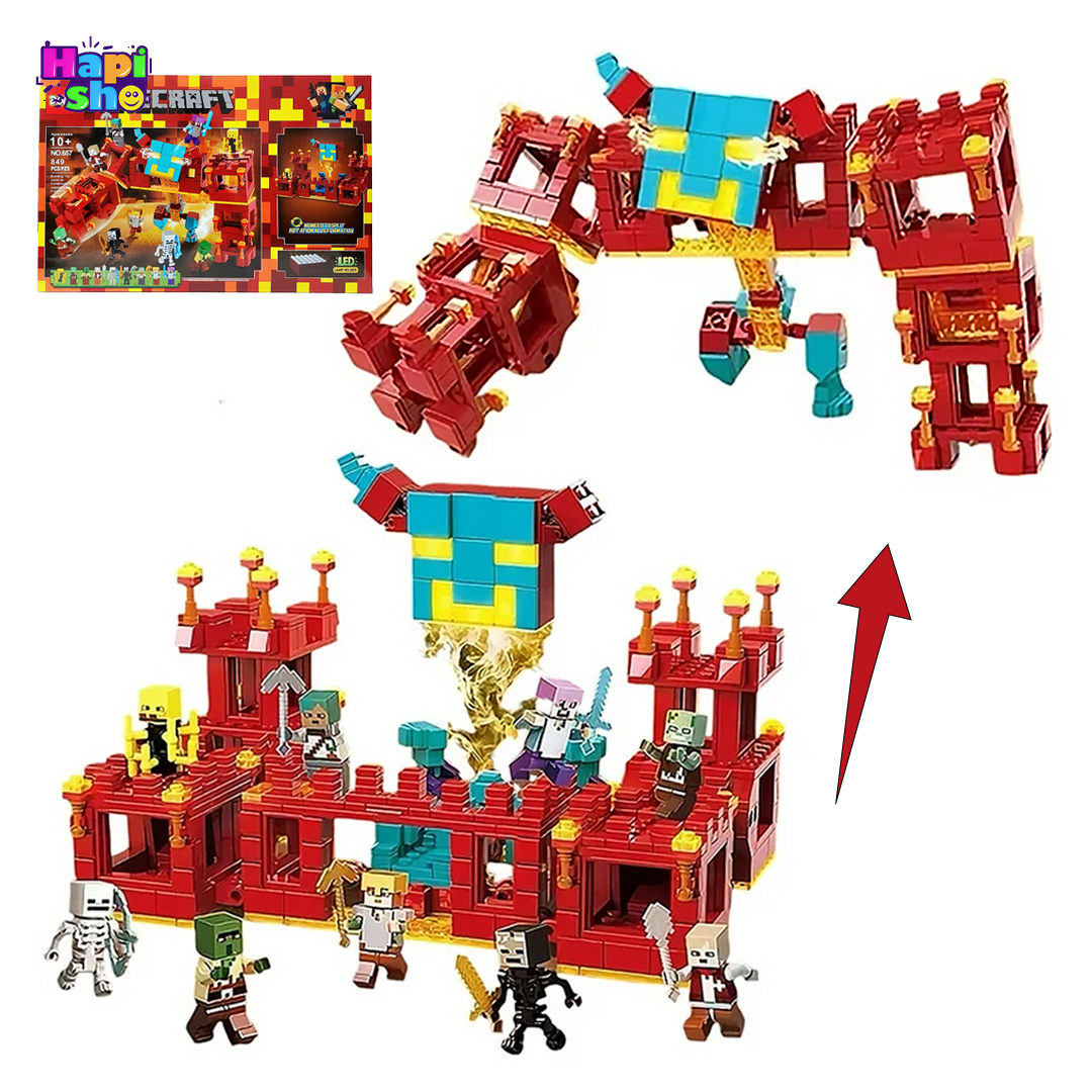 ویژگی: دوحالته تبدیلشونده (قلعه و ربات)، دارای چراغ الایدی، باتریخور، دارای 9 مینی فیگور شخصیتهای ماینکرافت، وارداتی