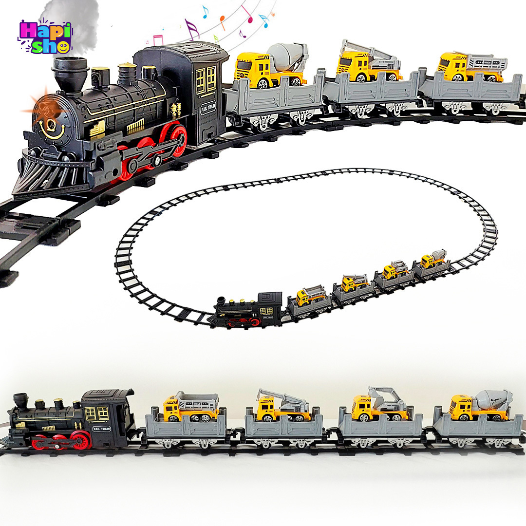 قطار اسباب بازی دودزا 5 کوپه بزرگ با ماشین و چراغ مدل CLASSIC TRAIN